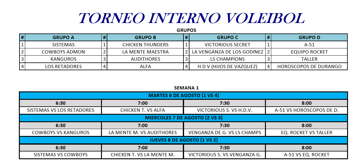 Rol de Juegos - Torneo Interno Voleibol